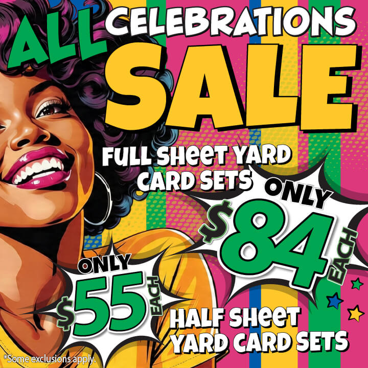 Large 23.5" Happy Birthday Yard Card EZ Quick Sets in Luckiest Guy Font and Birthday Flair in Sequin Patterns - (Available in Multiple Colors)