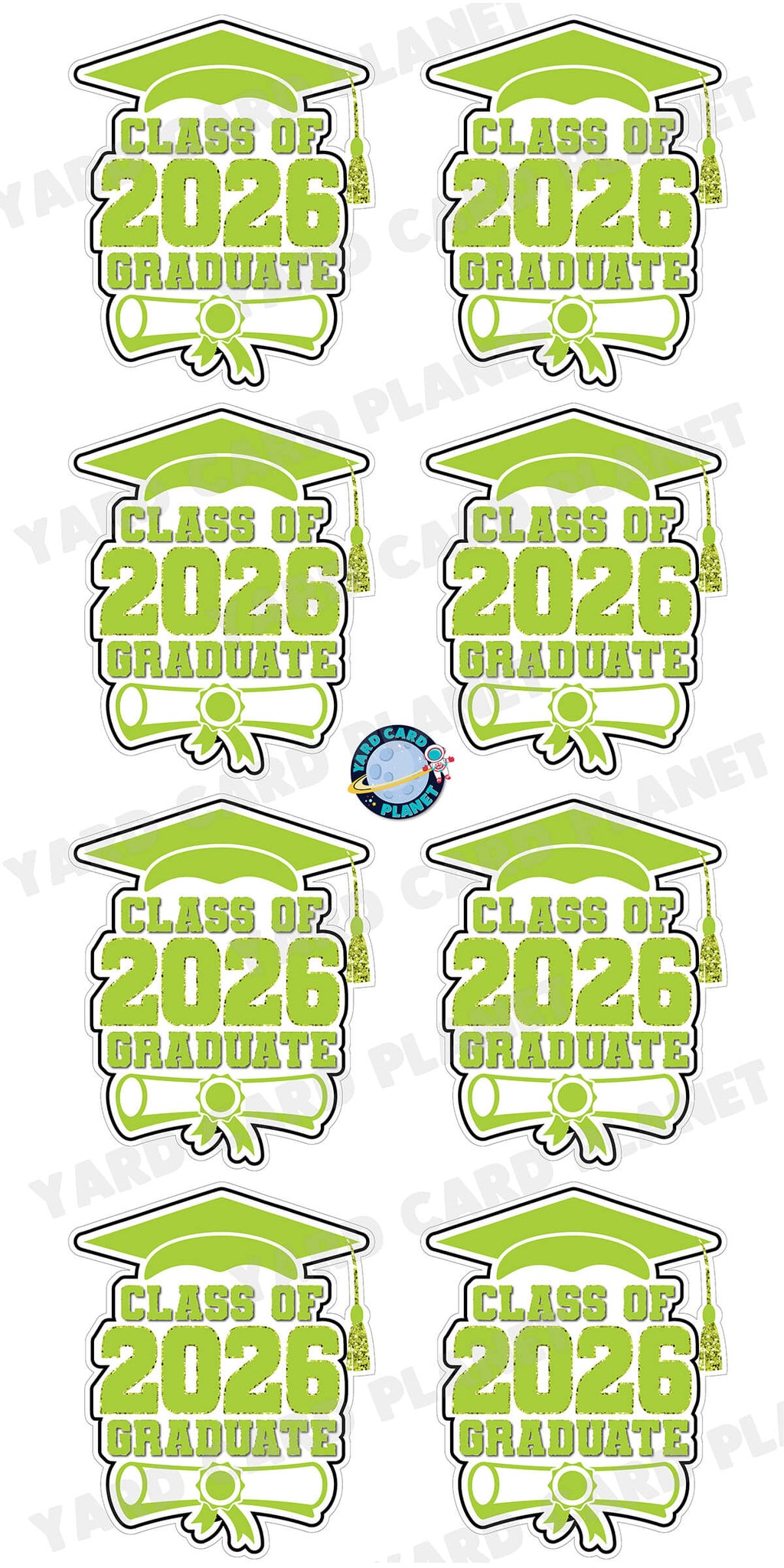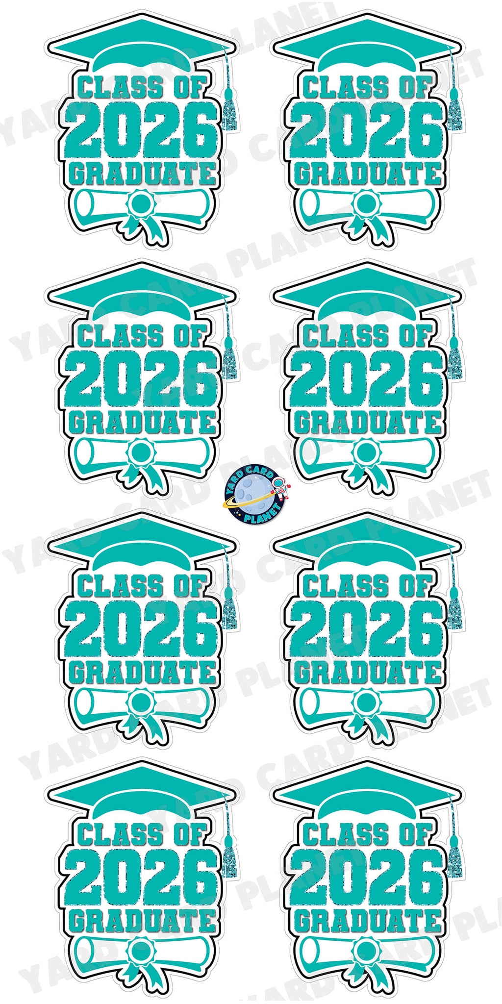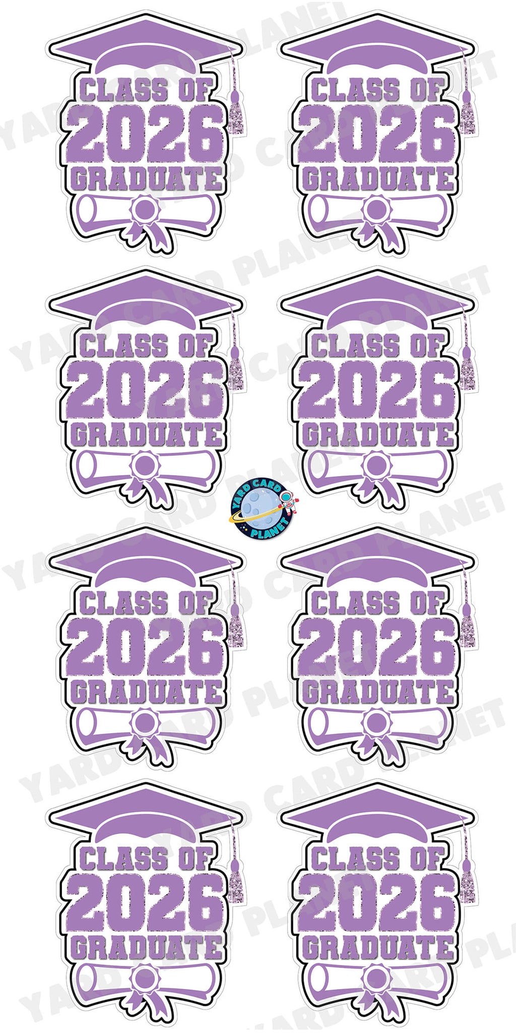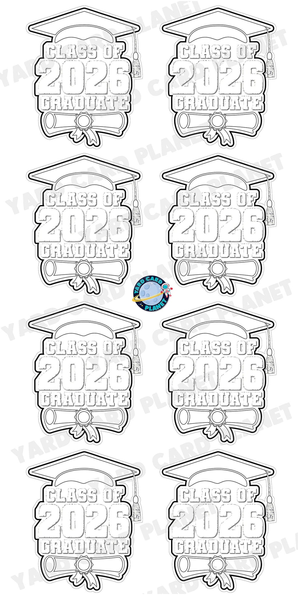 Celebrate the Class of 2026 in a bold and unforgettable way with our Class of 2026 Graduate Yard Card Sign Keepsakes in Solid Colors with Glitter Accent - (Available in Multiple Colors). Perfect for high school and college seniors, this standout keepsake features a classic graduation cap, scroll, and bold "Class of 2026 Graduate" lettering. These keepsake yard signs are ideal for honoring graduates in sports teams, clubs, academic programs, and more, plus they make a fantastic gift for students to proudly display at home or during senior celebrations. Whether you're a school administrator, PTA member, or a proud parent, this keepsake is a memorable way to celebrate your grads in style. You will receive 8 lawn signs, professionally printed, precision cut and ready to stake in various sizes shown below.