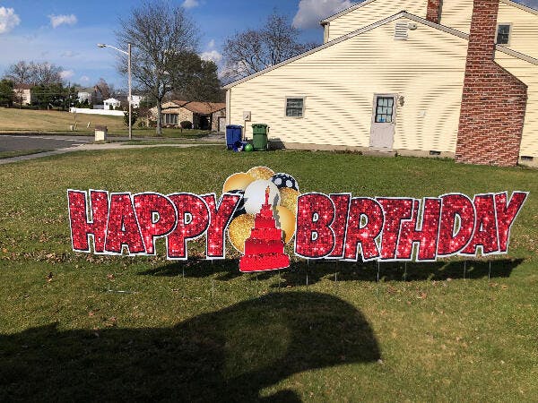 Get them in every color! Our Large 23.5" Happy Birthday Yard Card EZ Quick Sets in Luckiest Guy Font and Birthday Flair in Sequin Colors are sure to become the best addition to your yard card collection. Save time setting up since our yard signs are conveniently connected in 5 EZ sets spelling out "HAPPY BIRTHDAY". No need to stake individual letters anymore, instead it's as simple as staking 5 large signs. Along with every HAPPY BIRTHDAY EZ Set, you will also receive matching birthday flair to use for your lawn sign set up. Buy additional sets to mix and match your flair or even the letter groupings. You will receive 12 lawn signs, professionally printed, precision cut and ready to stake in various sizes shown below.